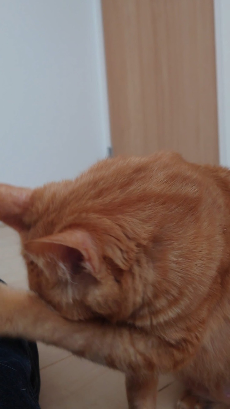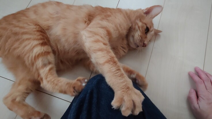 「ぼくは元気だから大丈夫ですよ。ズボンに爪立てっ」🐈