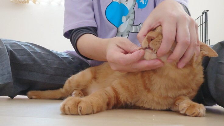 口からカーーッ!ペッ!!と吐き出しながらも、1日2回の薬とサプリを頑張っているヨッちゃん。次回はヨッちゃん甥っ子たちにされるがままというお話です。