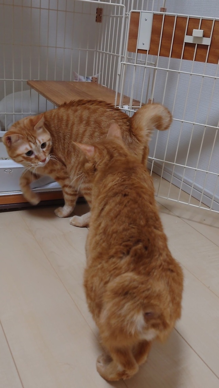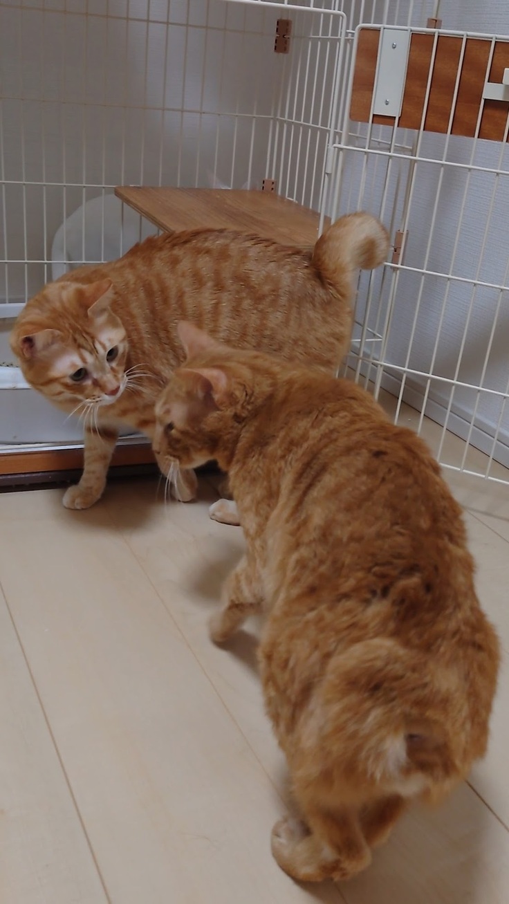 🐈左が虎太、右がヨッちゃん(ケージの中)🐈