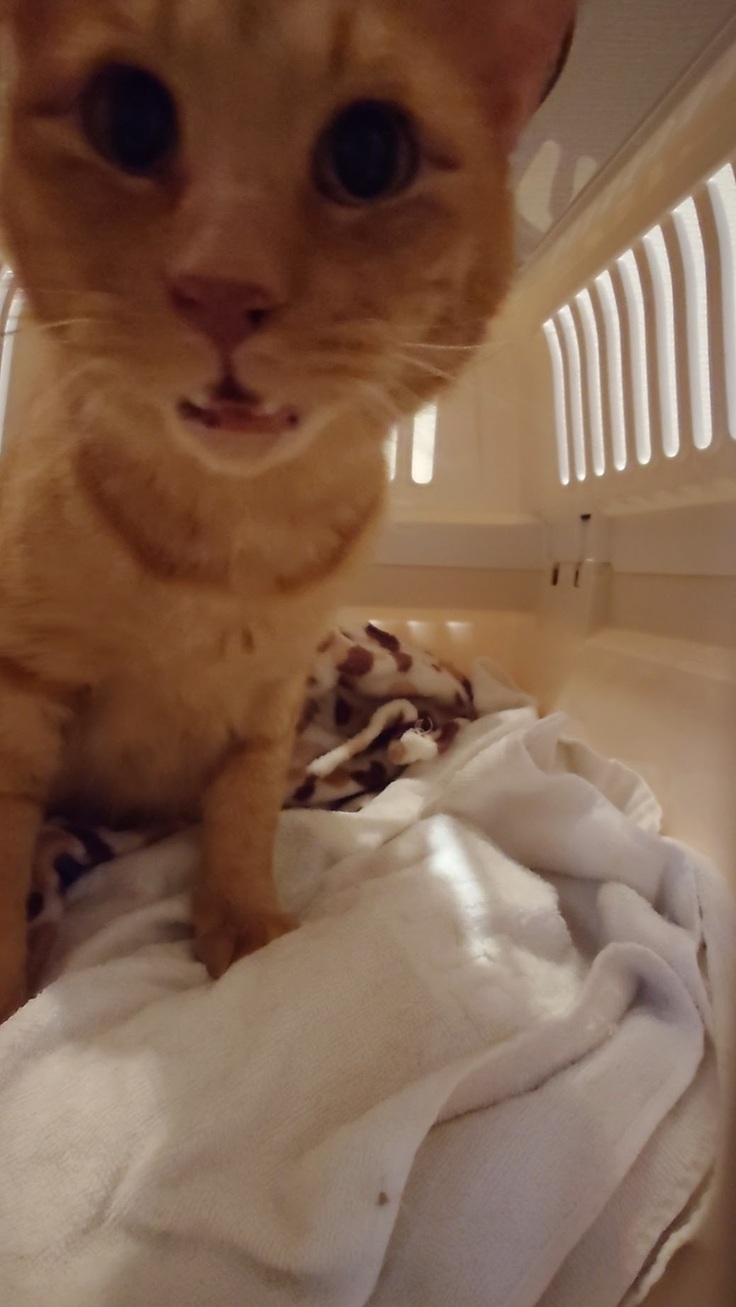 🐈病院に連れて来られて不機嫌なヨッちゃん。🐈