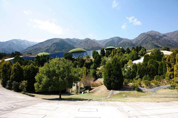 (養老天命反転地と美しい養老山脈)
