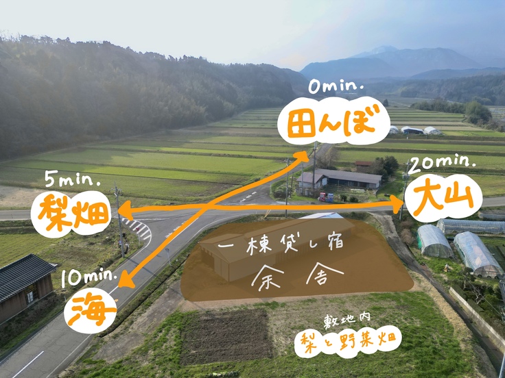 そんな地域に見合った宿泊施設を作るため、どうかご協力のほどよろしくお願いします。そして、皆さんのご協力により余舎が完成した際には、ぜひ泊まりに来てください。大山や日本海の絶景と共に、本間農園の美味しい梨でおもてなしします。