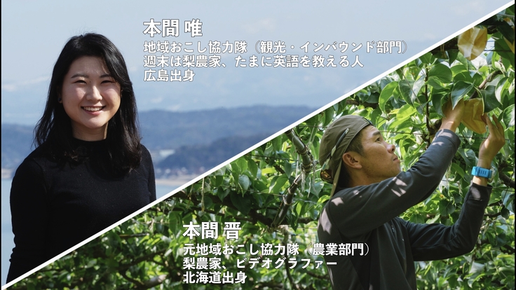 現在は観光(インバウンド)部門の地域おこし協力隊として活動しながら、休日は梨農家の夫と一緒においしい梨作りに励んでいます。今年の3月末に協力隊を卒業するので、これからは協力隊としての3年間で培ってきた知識と経験を活かして、余所者だった私たちを温かく迎え入れてくれた地域に恩返ししていきたいと考えています。