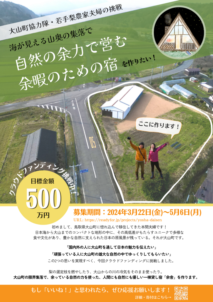 海が見える山奥の集落で、自然の余力で営む余暇のための宿を作りたい!