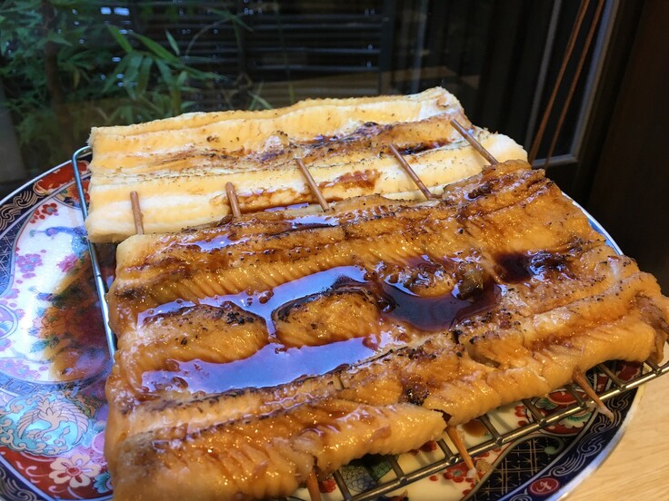 ふっくらと仕上がった炙り煮穴子と白焼。大きい穴子なので、骨もその分太く頑丈ですが