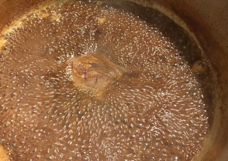 穴子を煮た煮汁を煮詰めて美味しいタレができあがります。この通称「詰めだれ」は当店の開業から継ぎ足しで作ったタレで、できる限り甘さを控えめにしうま味を重視しております。