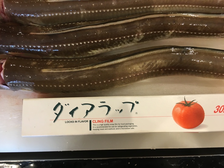気仙沼産の穴子を使用してます。写真は気仙沼産で大きさが約800gの穴子です。