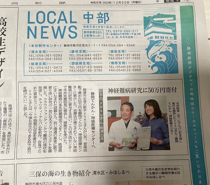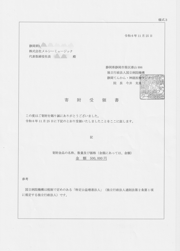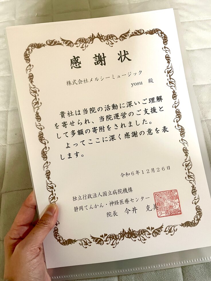 先日12/26に、2024年度のTender Song Project実施に関しての事業報告、および神経難病研究費としての寄付のご報告、そしてチャリティアルバムの寄贈のために伺いました。