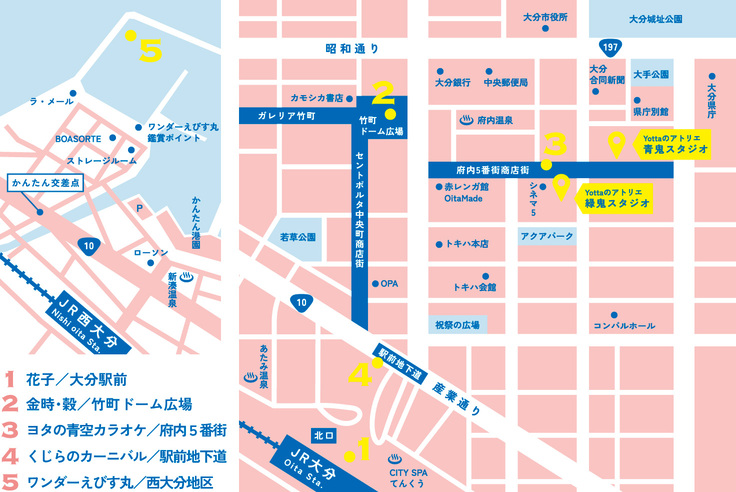 Yottaの展示としては過去最大となる今展では、 これまで制作してきた作品のほぼすべてが大分市内に点在しています。