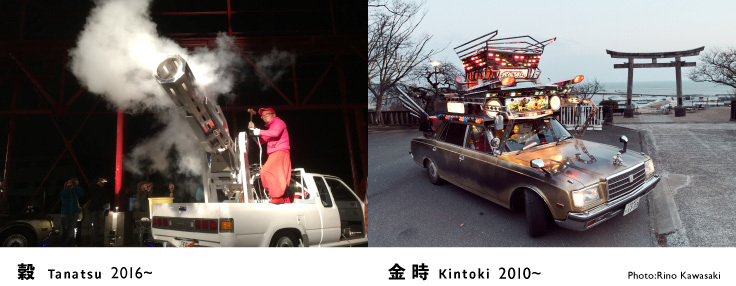デコトラ的装飾を積載した高級車で石焼き芋を焼く《金時》や、約12mもある巨大な歌うネオ伝統こけし《花子》など、アートに関心のない人も思わず立ち止まってしまうような作品を作り続けるYotta(ヨタ)。