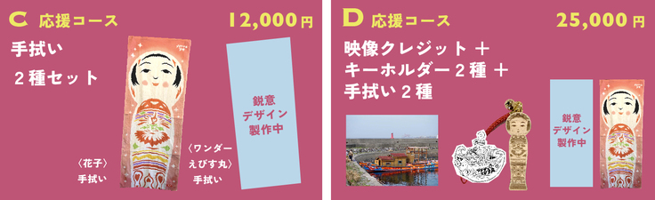 D.応援コース:映像クレジット、キーホルダー2種、てぬぐい(注染)2種 25,000円