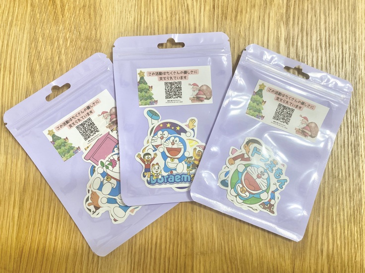 ※シールやキーホルダー、おもちゃなど約600人分をお届けしました。