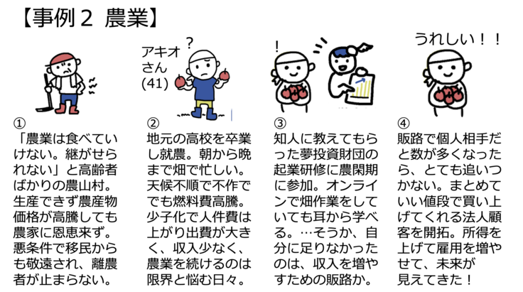 いずれの事例も、大都会に今まで伝わっていなかった、私たちの日本社会の地方の現実に基づいています。なお、一般的に伝わるよう内容の一部を見直しています。