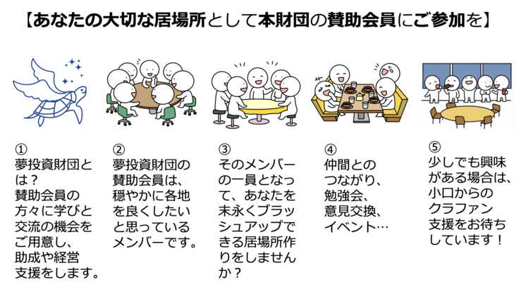 そして、夢投資財団の賛助会員について、マンガ風の一枚絵をご用意させていただきました。