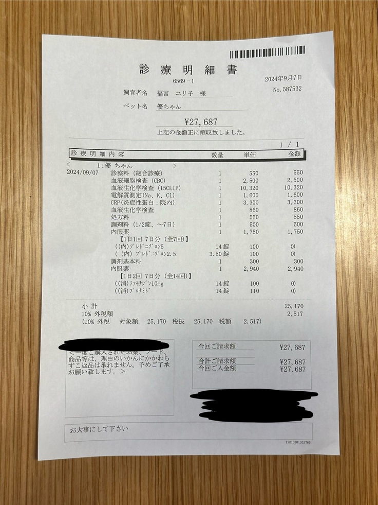 でも前回腎臓の数値が悪かった件は、今回正常値に戻っていたので、急性の物だったらしく安心でした🥹