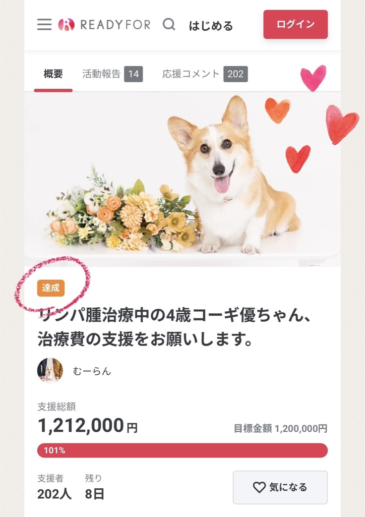 見ず知らずの我々に優しくしてくださった方々や、インスタで繋がっている犬友達、学生時代からの友達など、色々な方にご支援いただいて達成することができました😭!