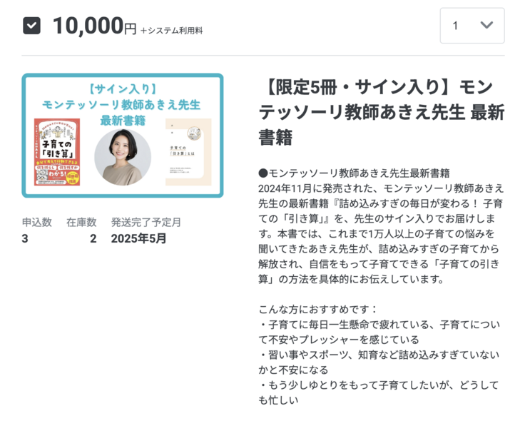 ▼あきえ先生のサイン入り著書【子育ての「引き算」】のリターンはこちらから