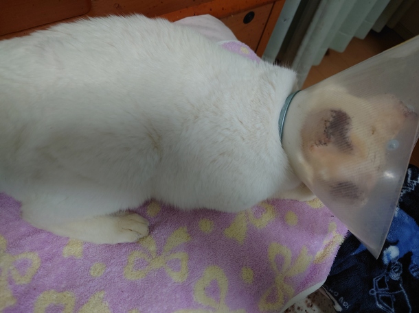 一時退院できて久しぶりの🏡の中を少しだけ探検(部屋の中のみ)。自分の枕ベッドで、エリカラを着けながらもゴロゴロタイムが1時間ほど。ユキに「おかえり」をたくさん言いました。