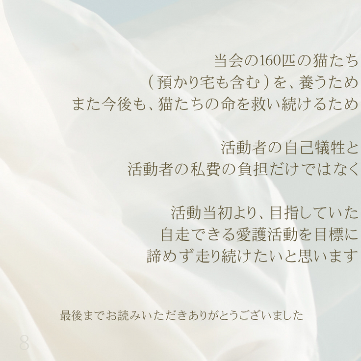 サポーター募集中/保護猫カフェ閉店で残った猫の飼育への援助を!