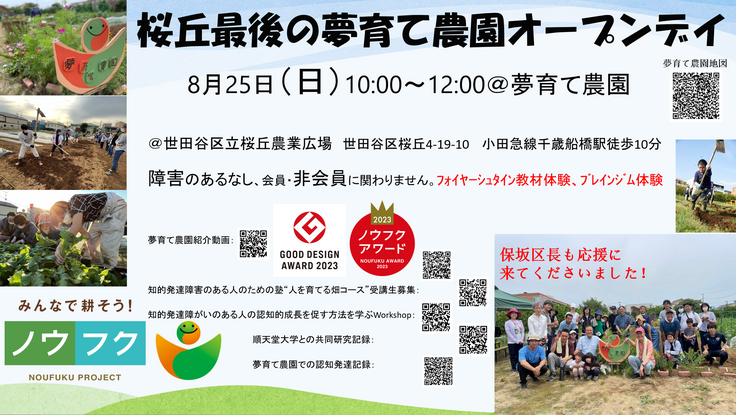 8月25日(日)AMは、桜丘で最後の夢育てオープンデイです!是非、お運びください!