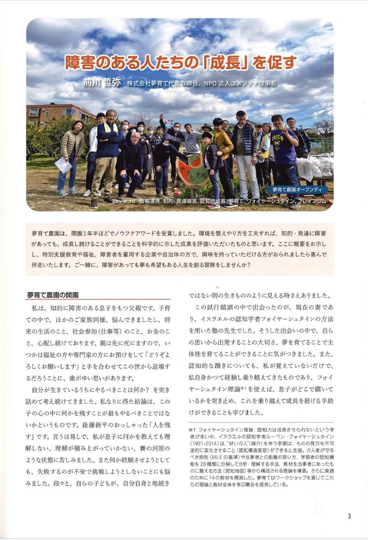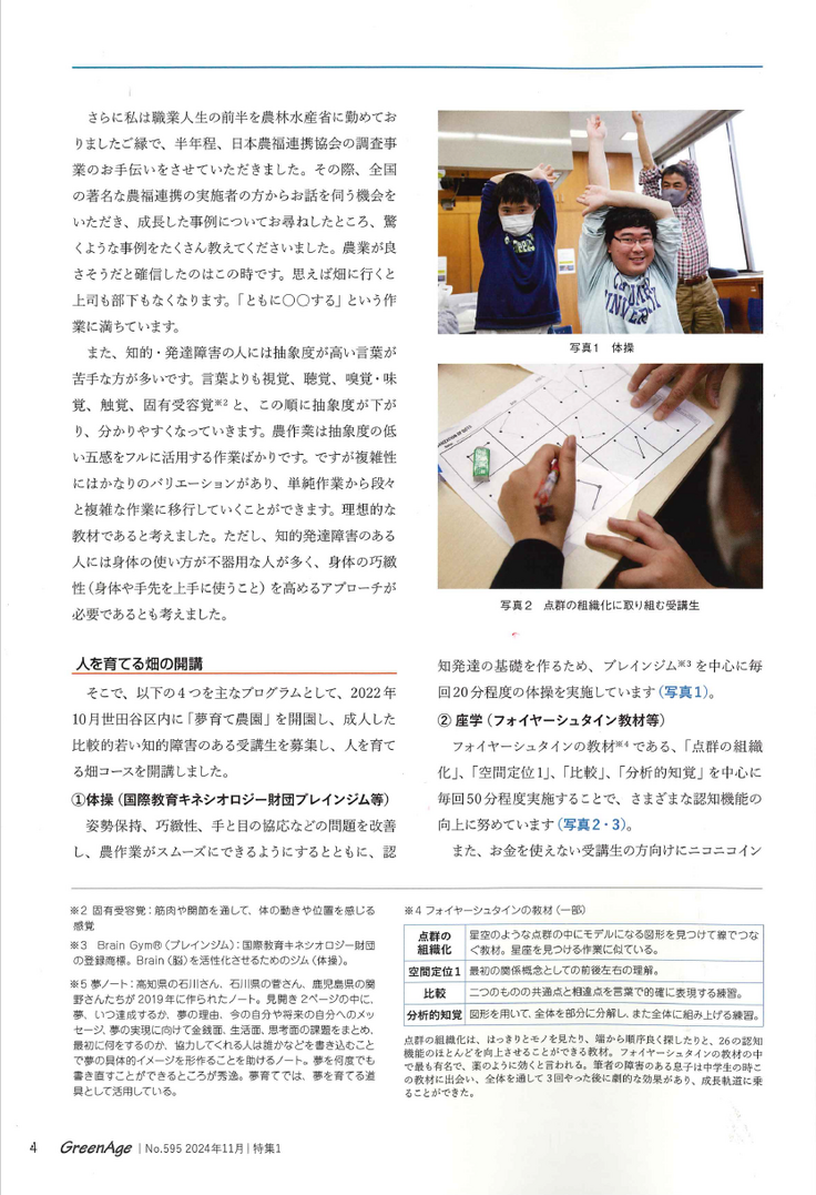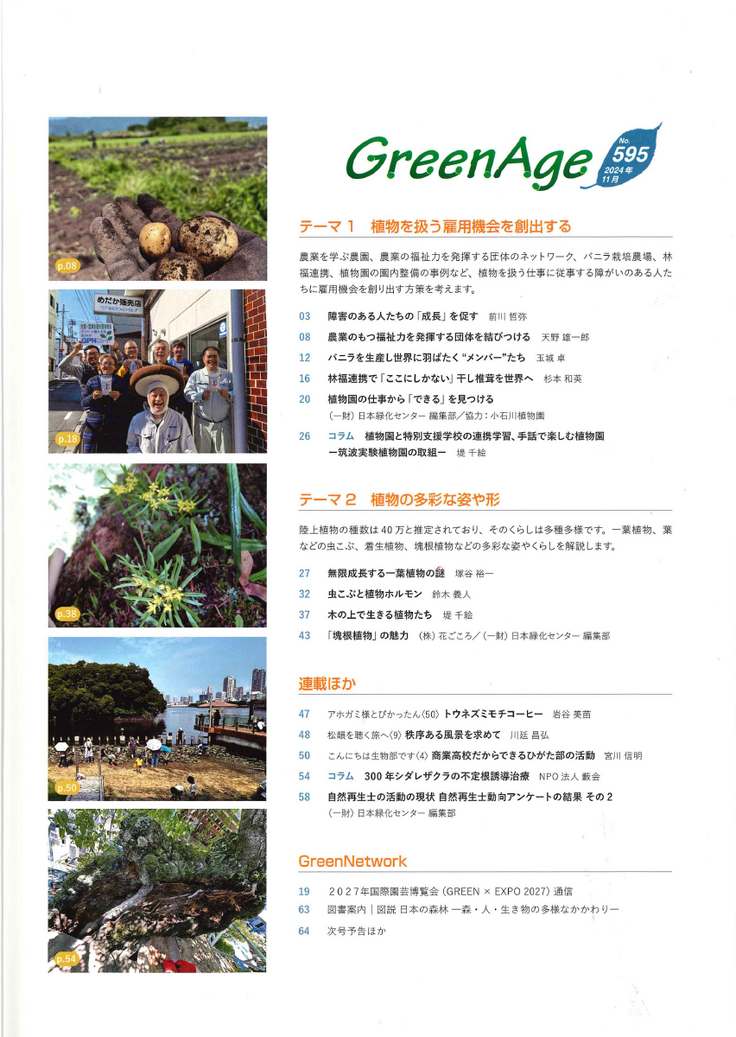 日本緑化センターの雑誌グリーンエイジの2024年11月595号に夢育て農園の記事を書きました!