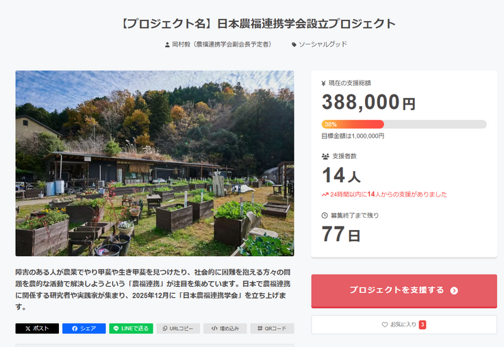 日本農福連携学会設立にあたり、クラウドファンディングを始めました!