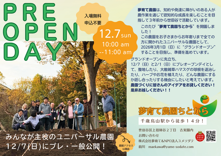夢育て農園ちとから PreOpenDay 20251207 10:00-11:00