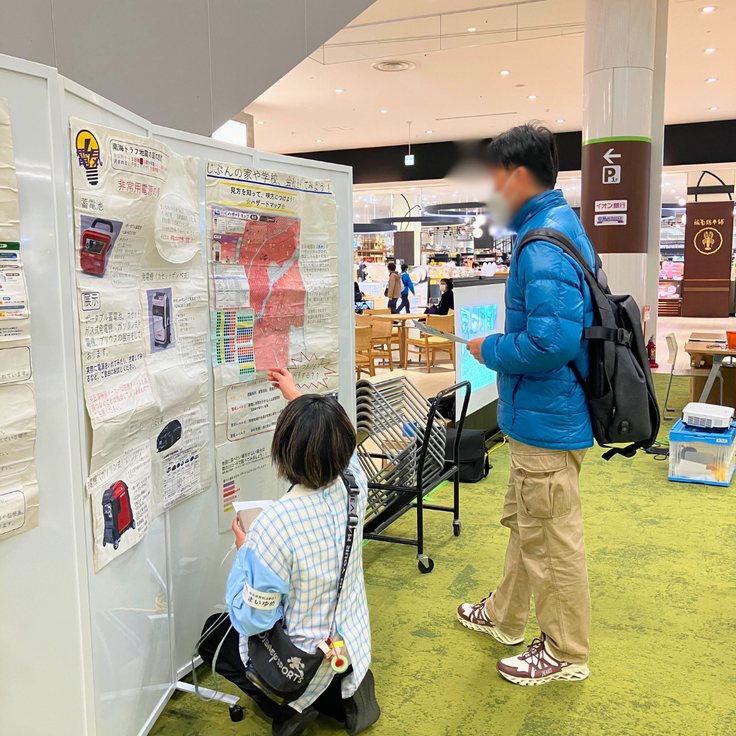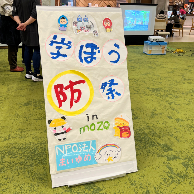 ・まいゆめの防災パネル展示やペーパークラフト、ぼうさいNURIE、