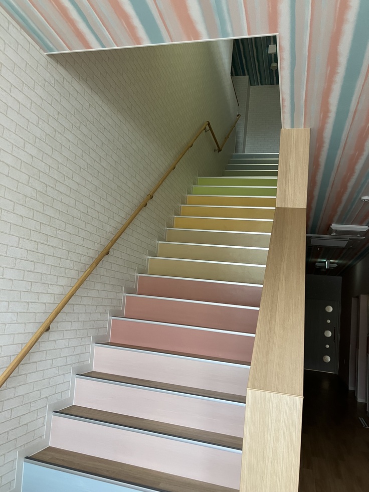 壁紙や階段も、とってもカラフルです♪