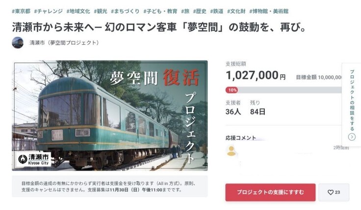 寄付控除対象|夢空間復活保存を応援!(10,000円寄付コース)
