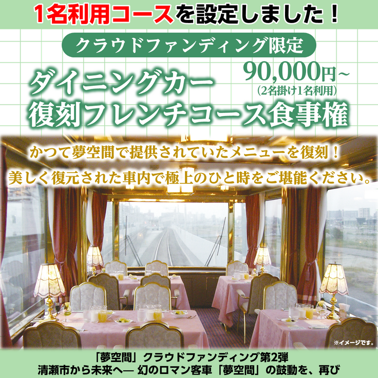 寄付控除対象外|【特別体験で応援】クラファン限定ダイニングカーフレンチコース食事権テーブル1名分(令和8年4月29日夜)