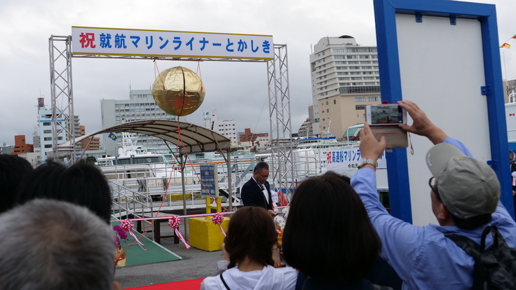 この日は偶然にも、新しくなった高速船の初出航の日で、セレモニーが盛大に行われていました。