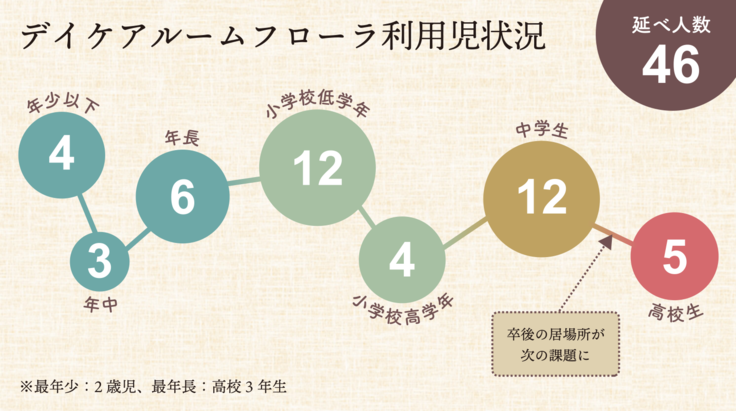 また現在、私たちゆめのめが運営しているデイケアルームフローラの利用児の年代別の状況は下のようになっています。