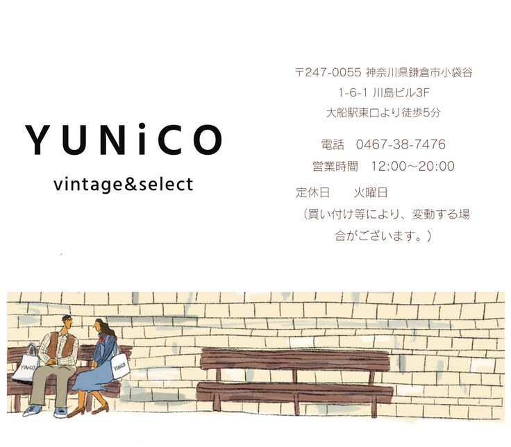 初めまして、古着屋YUNiCO(ユニコ)の