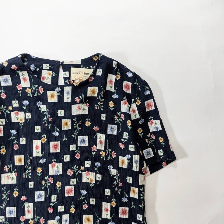 ◇リネンシャツ×小花柄カットソー×デニムパンツ