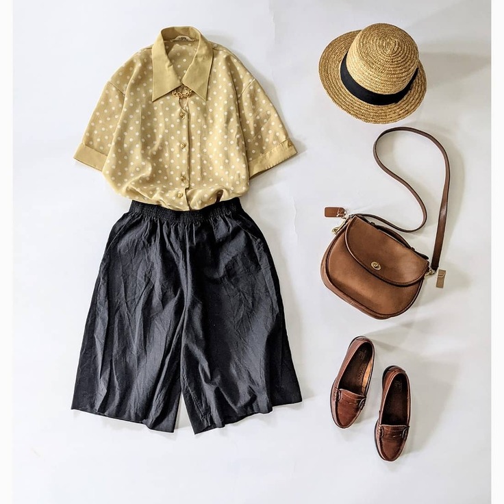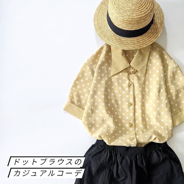 【ドットブラウスのカジュアルコーデ】【柄シャツのラフコーデ】