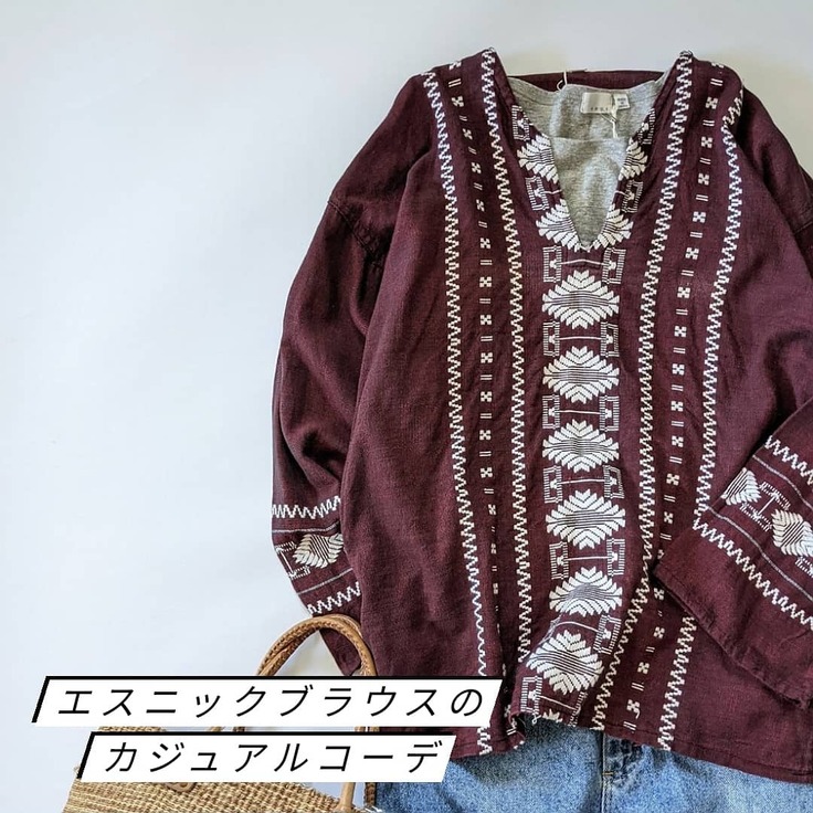 【エスニックブラウスのカジュアルコーデ】