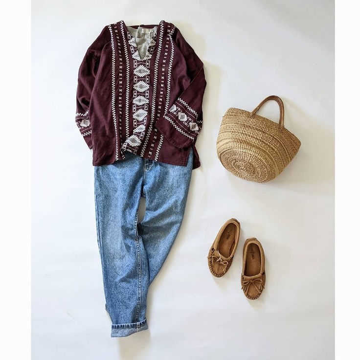 【くすみカラーコーデ /エスニックブラウスのカジュアルコーデ】