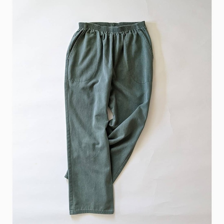 ・くすみグリーンのイージーパンツ