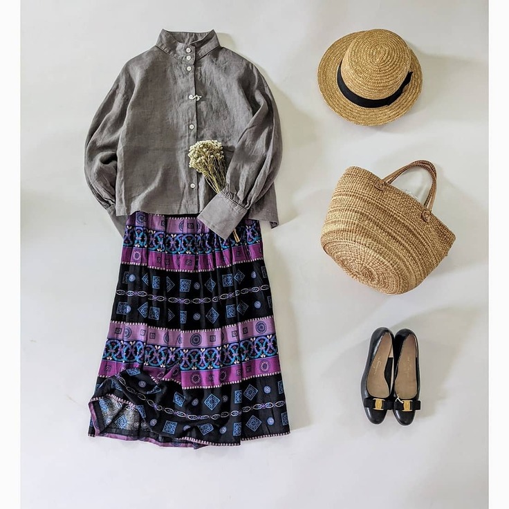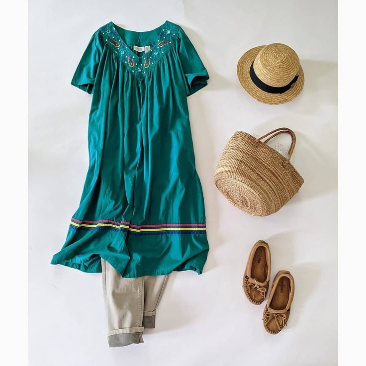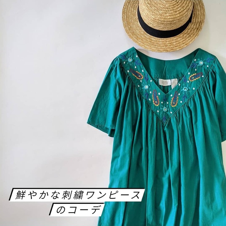 【落ち着いたトーンの夏コーデ/鮮やかな刺繍ワンピコーデ】