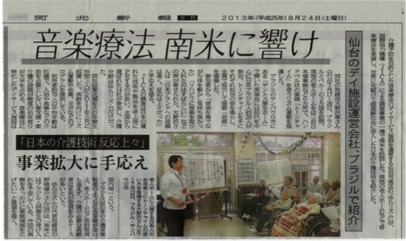 【新聞掲載】音楽療法南米に響け 仙台のデイ施設運営会社、ブラジルで紹介