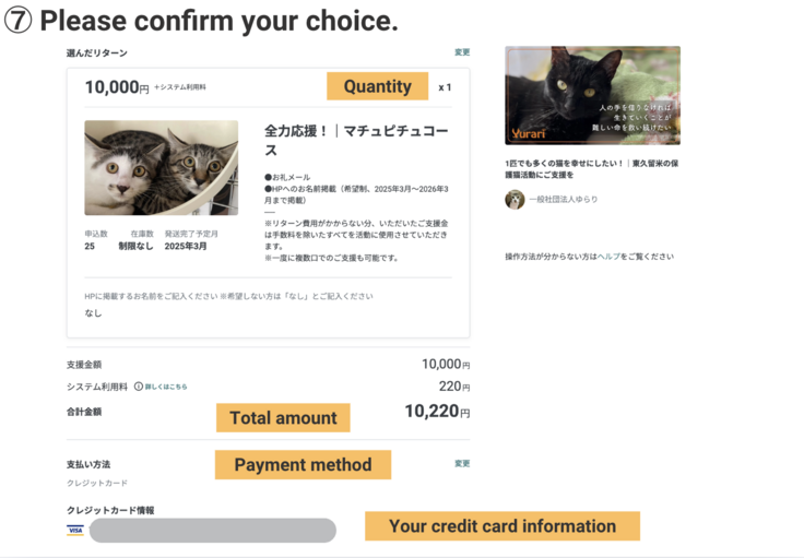 ※リターン費用がかからない分、いただいたご支援金は手数料を除いたすべてを活動に使用させていただきます。
