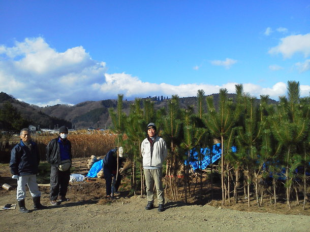 12月11日、ゆりりん愛護会が育成している名取市高舘のマツ苗畑を「こうべ森の学校」の木下英吉代表と2名の会員の方々が訪れました。
