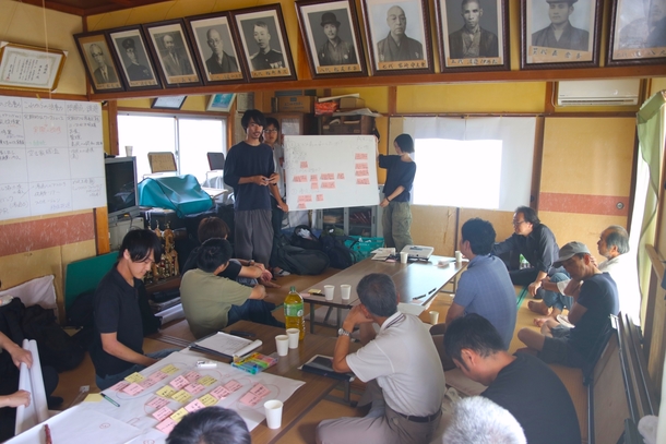 湯島で活動するうちに、この島を観光に訪れた人々は、食事場所に困っていたり、猫とふれあう以外は手持ち無沙汰だったりと、この島を満喫できていない様子に気づきました。せっかく島に来ても、島の魅力を全部知らずに帰るのはもったいない!と思い、島民の方々と一緒に、島の活性化を考えるワークショップを行いました。