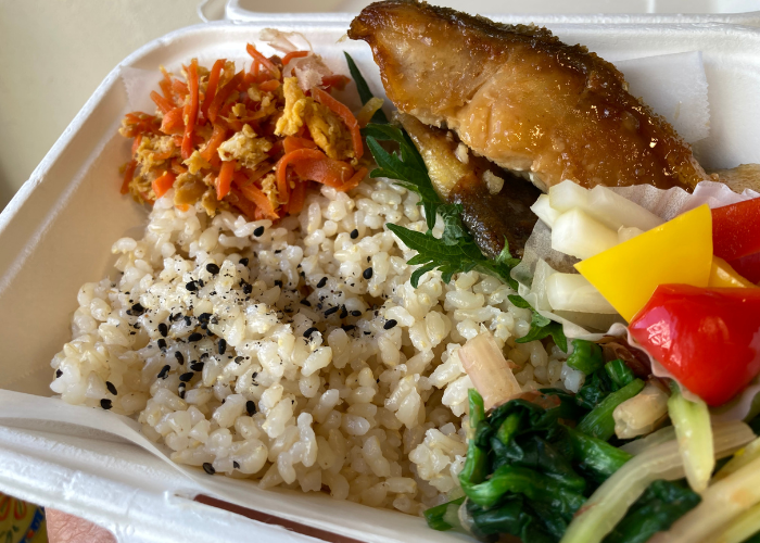 ユタカで販売している料理はできるかぎり手作りのお料理をご提供しています。 管理栄養士監修のお弁当はメインと野菜を中心としたおかずが 3 品ほど入っています。みなさんの元気の源になるよう、食品のバランスや糖質、脂質、塩分などに考慮した内容になっております。他にオリジナルスパイスを使ったドライカレー や量り売りのおそうざいを販売しています。新店舗は店内で食事ができるので朝ごはんやコーヒーをご提供する予定です。