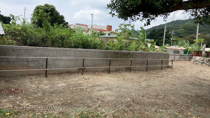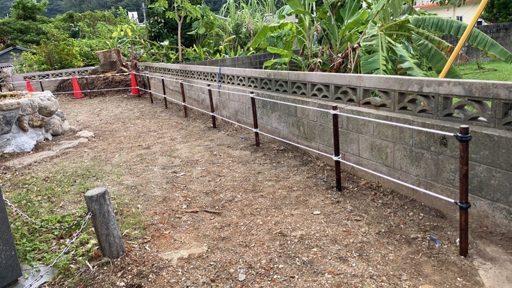 写真に写っている塀は、成長しすぎた木の根によって傾いてしまっており、すぐに補修することが難しい状況です。そのため、まずは子どもたちが安全に過ごせるよう、柵の設置を優先して行いました。