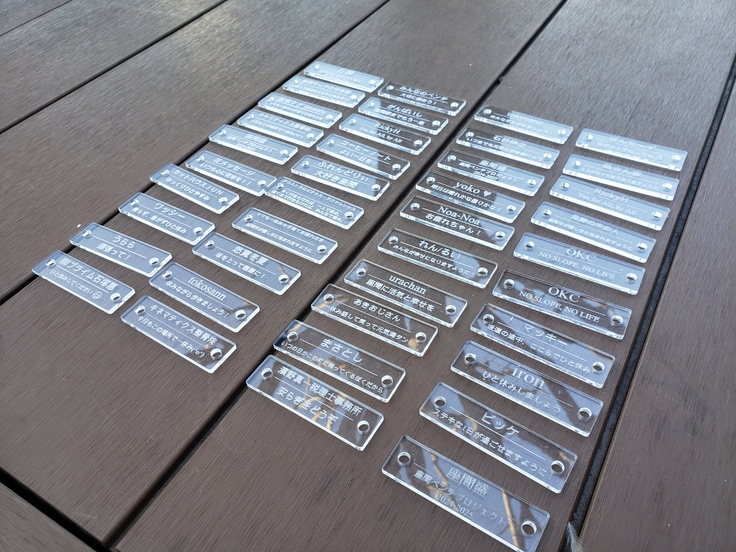 返礼品(リターン)として、ベンチに設置するみなさまのメッセージ入りプレートが完成しました。