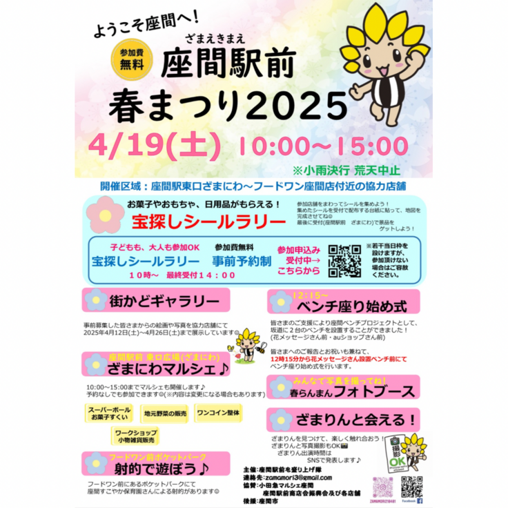 当日は我々座間盛主催のイベント「ようこそ座間へ 座間駅前春まつり2025」を座間駅周辺で開催する予定で、ベンチ座り始め式はそのイベントの一部となります。