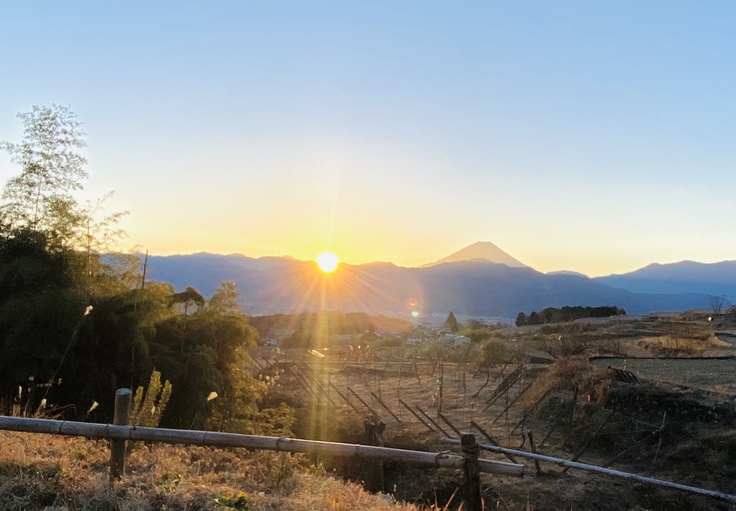 ●初日の出 「月晴れる」から富士山と絶景ぶどう畑を眺めて