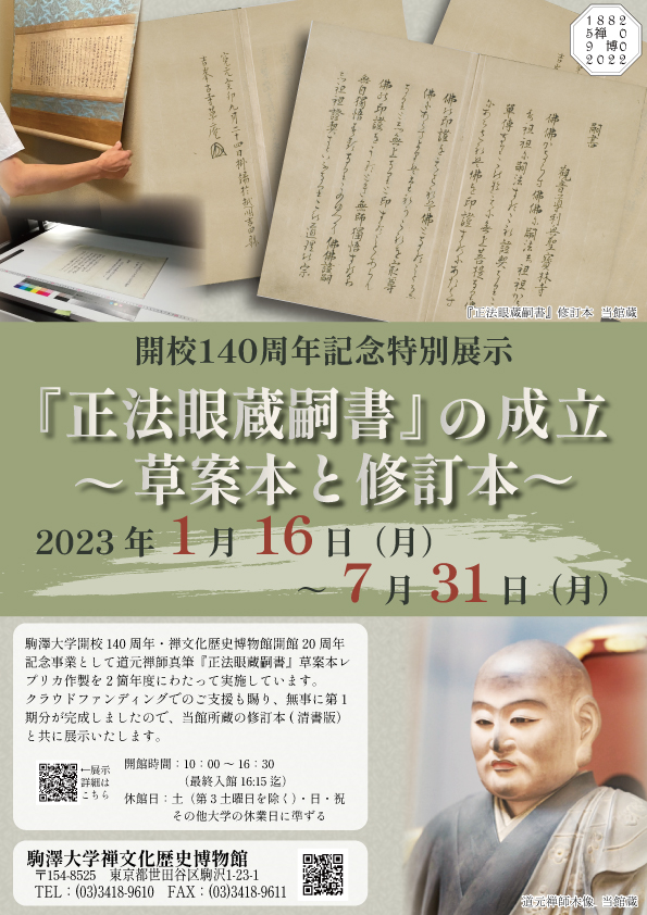 駒澤大学開校140周年・禅文化歴史博物館開館20周年記念事業「道元禅師真筆『正法眼蔵嗣書』草案本レプリカ作製プロジェクト」には、心のこもったご支援を賜り誠にありがとうございました。